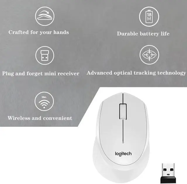 Logitech M330 Mouse 2.4 GHz Wireless Silent Mouse 1000DPI 3 Buttons Gaming Optical Mice USB Nano Receiver for Laptop Desktop PC