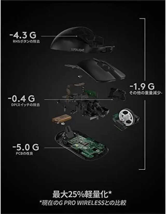 • [The lightest wireless gaming mouse in Logitech G history] Surprisingly lighter than 63g, 25% lighter than the GPRO gaming mouse (80g), the new GPRO bears the name of PRO X SUPER LIGHT.