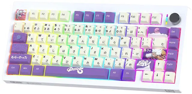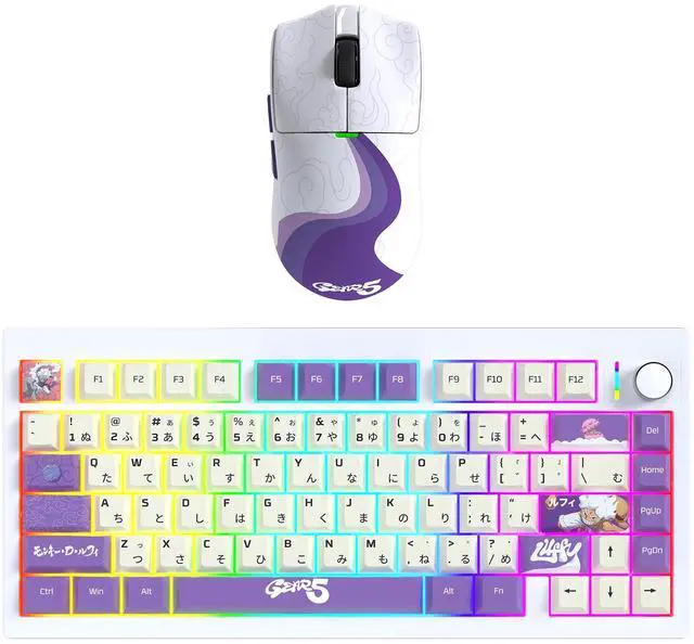 Fantech One Piece Gear 5 Luffy Edition Wireless Gaming Mouse and Keyboard Set, Tri-Mode Connectivity, RGB Charging Dock, 12000 DPI for PC & Mac,80 Keys, WG13E Purple+MK921 Brown Shaft