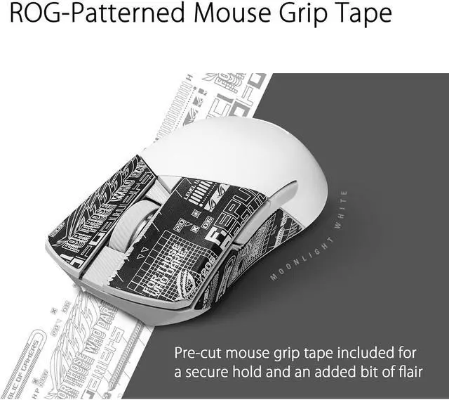 Anti-slip ROG patterned mouse grip tape: Provides users with a more secure grip and an added bit of flair