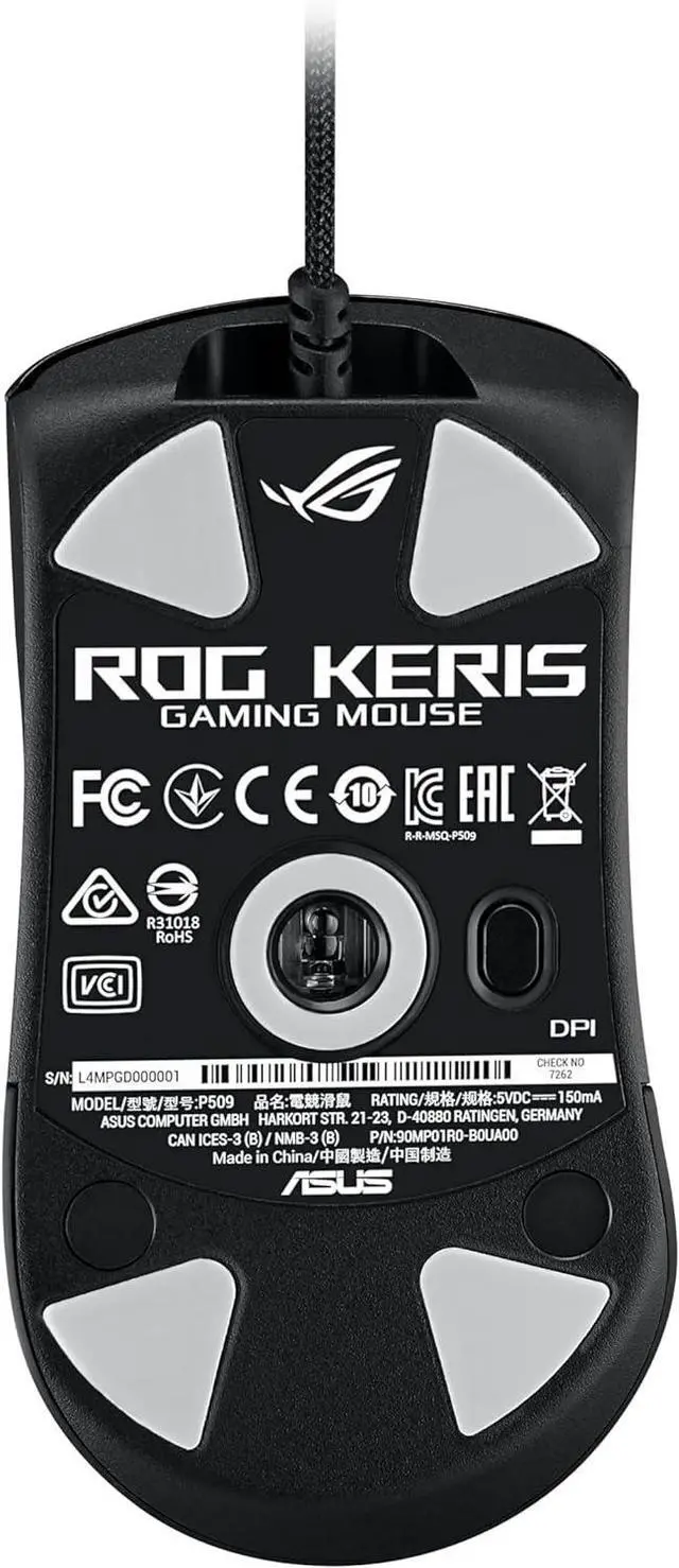 The ASUS ROG Keris is a lightweight FPS optical gaming mouse, engineered for competitive gamers who prioritize swift movements and pinpoint accuracy. Tipping the scales at just 62 grams, its streamlined design offers comfortable handling for diverse grip types, while the advanced optical sensor delivers impeccable tracking performance. Equipped with long-lasting ROG Micro Switches and on-the-fly DPI adjustments, the Keris is a robust and responsive tool, providing a significant advantage in demanding first-person shooter games