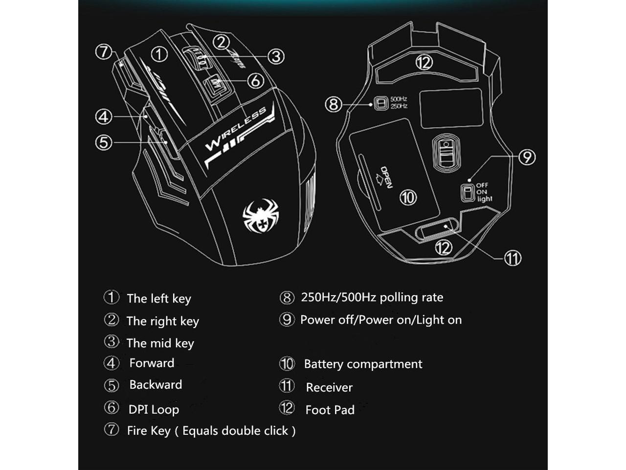 - Ajustable DPI Function: 600/1000/1600/2400,you can change Mouse speed easily;Maximum Acceleration 20G;Polling rate: 250Hz/500Hz