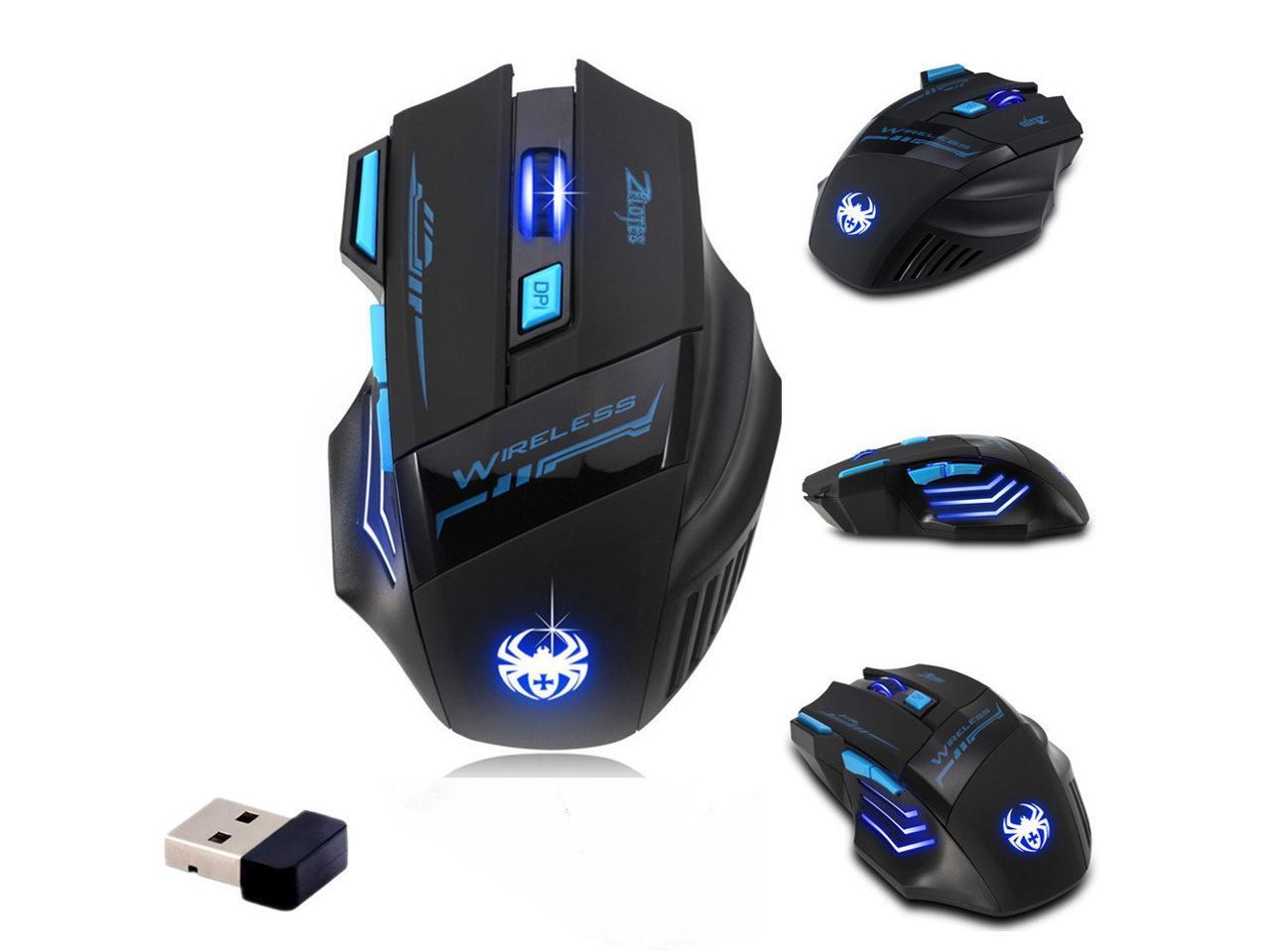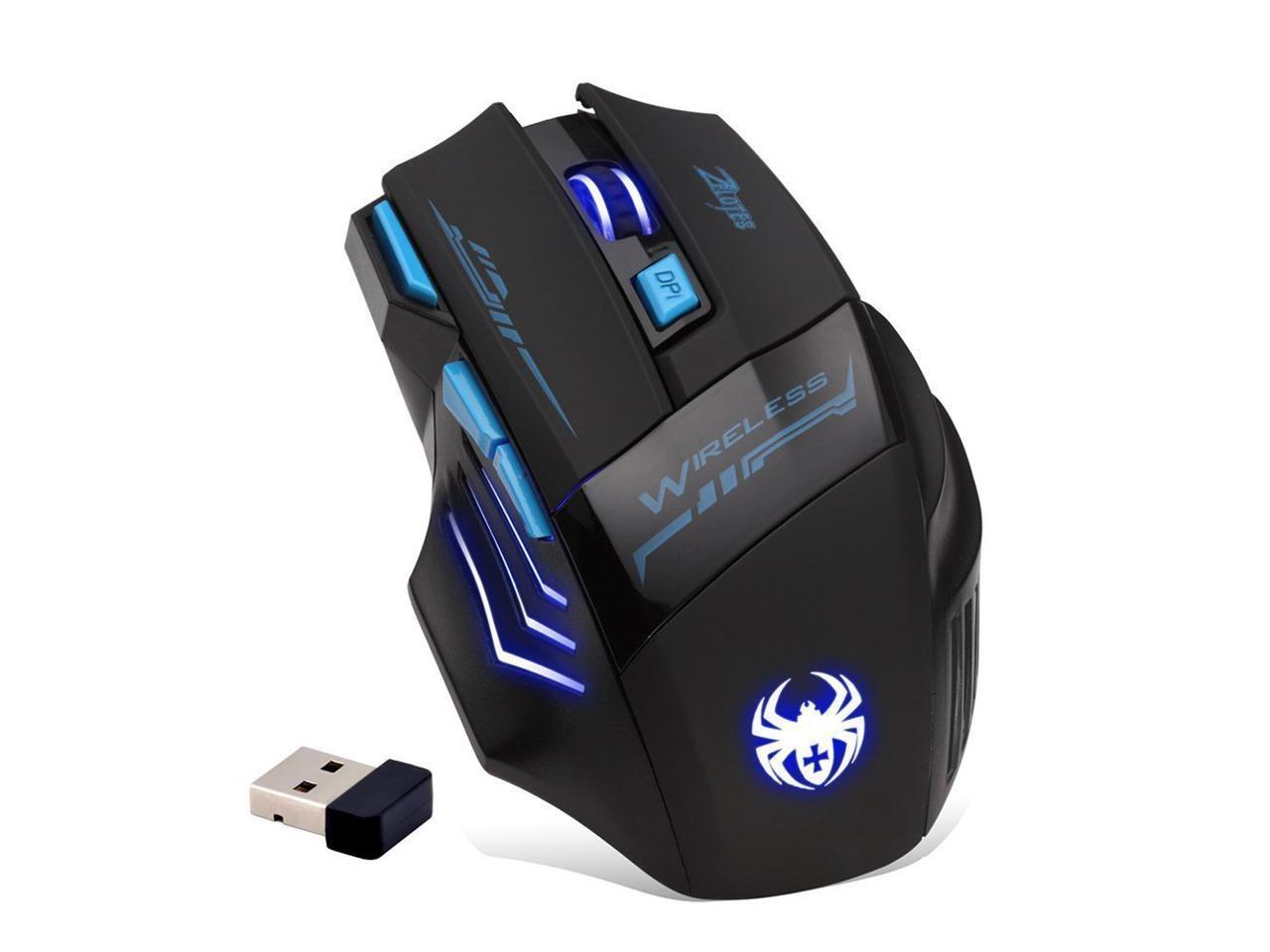 ZELOTES Professional LED Optical 2400 DPI 7 Button USB 2.4G Wireless Gaming Mouse Mice for Gamer (Black)