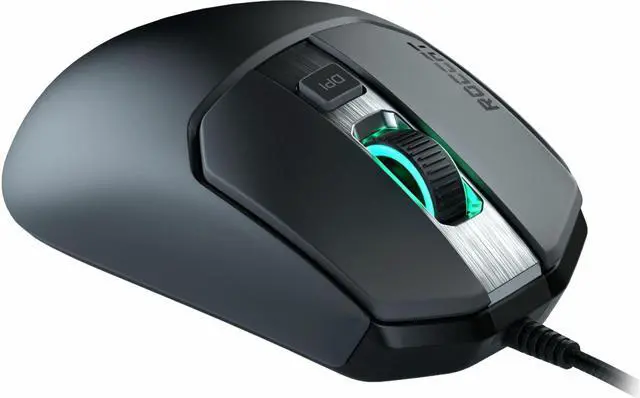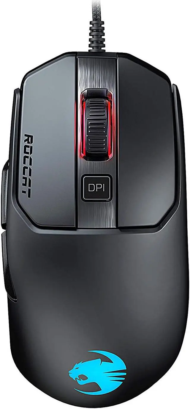The ROCCAT Kain gaming mouse features a comfortable ergonomic shape and Titan Click technology for vastly improved click balance and precision. The accurate ROCCAT Owl-Eye optical sensor is adjustable up to 16, 000dpi and lets you achieve perfect tracking. The AIMO illumination eco-system provides RGB lighting and LED effects customizable in 16.8 million distinct colors. The overhauled Titan Wheel 2.0 scroll wheel unlocks solid clicks and responsive scrolling steps. ROCCAT-exclusive Omron switches last for up to 50 million clicks.