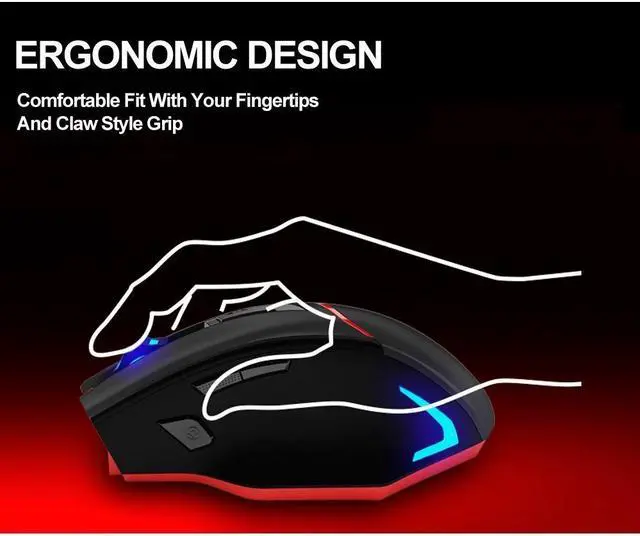 Ergonomic design: never felt so good Snug right-hand grip design with skin-friendly finish, keeps your hand clean with less fatigue after a long gaming or work session.Perfect for All Hands, fits comfortably in your hand and the buttons are perfectly located for all your hotkeys and gaming needs, avoids hand fatigue for long term use. USB Nano Receiver which can be stored within the back of the mouse. 7 color circle breathing light design. there is a button at the bottom of the mouse, three options: ON, OFF, ON/light. The LED light can be turned off if necessary.