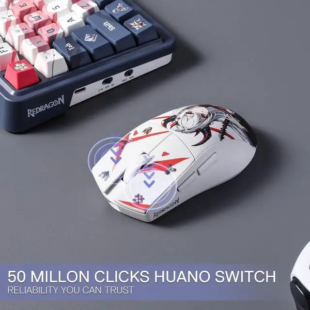 Redragon Anime Girl OUT- Here comes the adorable and reliable ally of Redragon, personalized waifu character Eisa reporting! Covered with Redragon character theme patterns and elements offer you a different M916! Make every click a statement of your unique style.