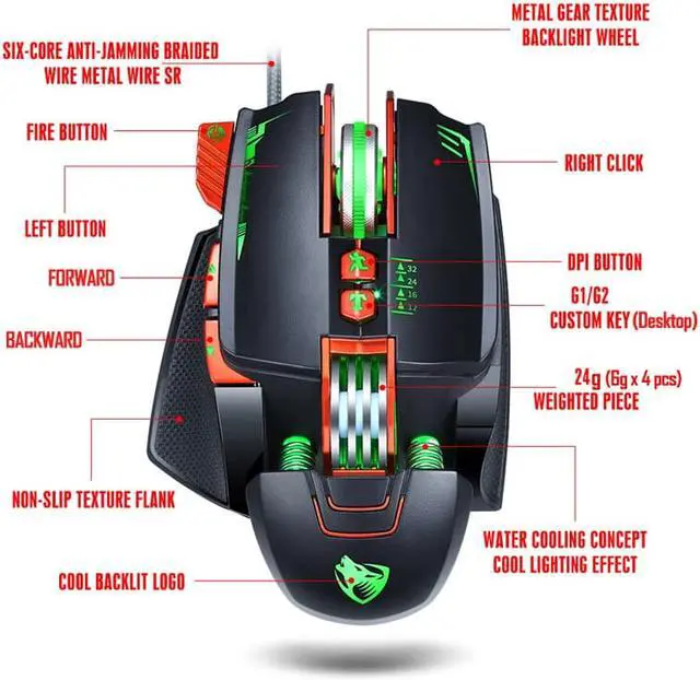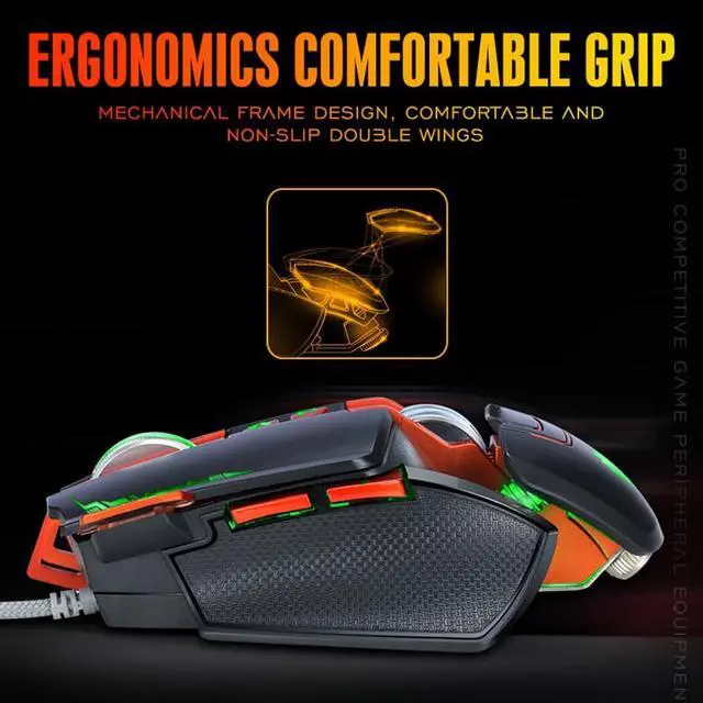 - High-end brand mechanical macro definition gaming mouse for game lovers - Ergonomic Design perfected for E-sports athletes, with textured side grips, not feel tired during long time using - 8 buttons programmable for more convenient game operations and set buttons function freely through the driver software - 4 Levels of Adjustable DPI (1200/ 1600/ 2400/ 3200), provides precise positioning and helps you win the game - Cool LED Breathing Light Effect, decorate the gaming combat atmosphere - Built-in Removable 4pcs counterweight modules, enable you to adjust the mouse weight freely -