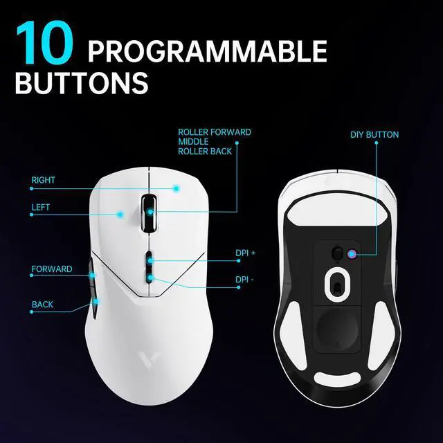 Optimize your gameplay with custom keybinds and macros, all 10 buttons can be bound to activate in-game commands and more.