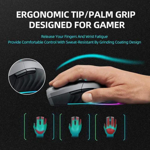 EPOMAKER Click Gaming Mouse Wireless 2.4Ghz/Bluetooth/Type-C, 800 to 42,000 DPI Adjustable, 8K Polling Rate, 500mAh, Lightweight Optical Mouse, for PC/Mac/Linux (Black)