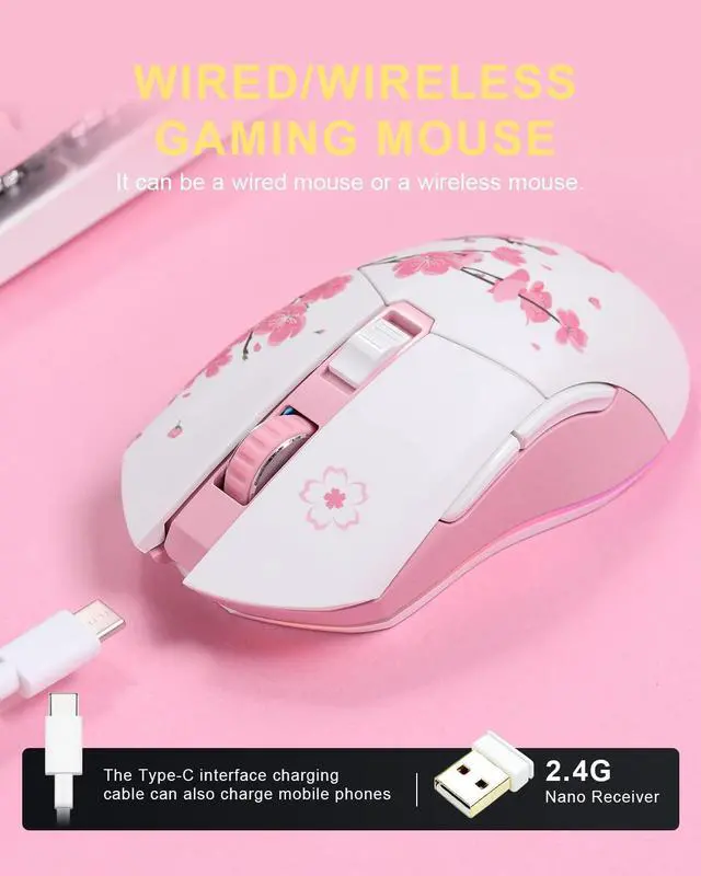 ![Alt view image 6 of 6 - DAREU Sakura Pink Wireless Wired Gaming Mouse, Dual-Mode Rechargeable 6 Programmable Buttons,10K DPI,RGB and 7 Adjustable DPI Levels up to [150IPS] [1000Hz Polling Rate] for PC Notebook Mac](https://c1.neweggimages.com/productimage/nb640/C3S5D2601030YMYZN51.jpg)