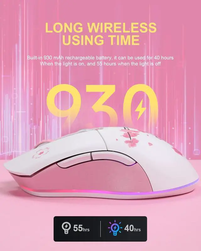 ![Alt view image 5 of 6 - DAREU Sakura Pink Wireless Wired Gaming Mouse, Dual-Mode Rechargeable 6 Programmable Buttons,10K DPI,RGB and 7 Adjustable DPI Levels up to [150IPS] [1000Hz Polling Rate] for PC Notebook Mac](https://c1.neweggimages.com/productimage/nb640/C3S5D2601030YMYVOA7.jpg)