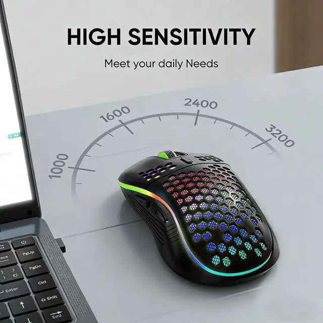 Wireless Gaming Mouse Honeycomb 2.4G USB Cordless Mouse RGB Rechargeable PC Game Mice with 7-Color LED Lights4 Adjustable DPI for Windows Laptop Desktop Computers
