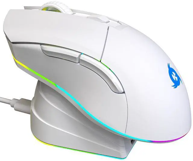 Blaze Pro Rechargeable Wireless Gaming Mouse with Charging Dock RGB - New Version - High-Precision Sensor and Long-Lasting Battery - Up to 6000 DPI - Great PC Gaming Mouse Wireless - White