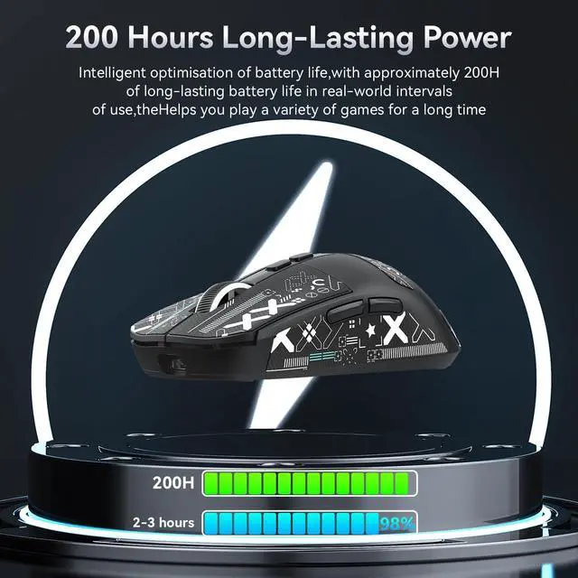 RGB Backlight Charging Base&Touch SwitchThe ATTACK SHARK X6 mouse can be quickly recharged with the cool RGB backlight charging dock, which features an RGB backlight effect that can be customized with tactile controls. With up to 200 hours of use on a single charge, you can enjoy an uninterrupted gaming experience without worrying about your mouse's battery life or the hassle of finding a charging cable.