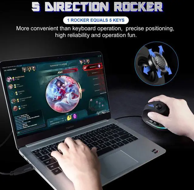 One joystick is equivalent to five keys, enabling the realization of operations in front, rear, left, right and downward pressure. It makes it easier to move and aim at enemies.