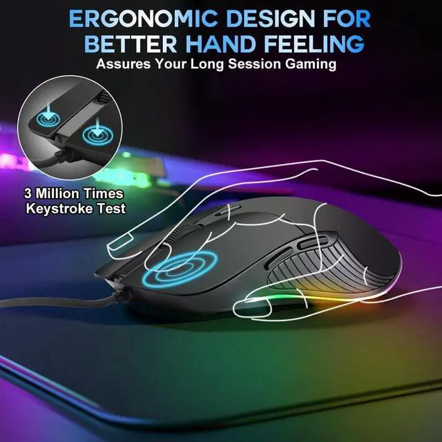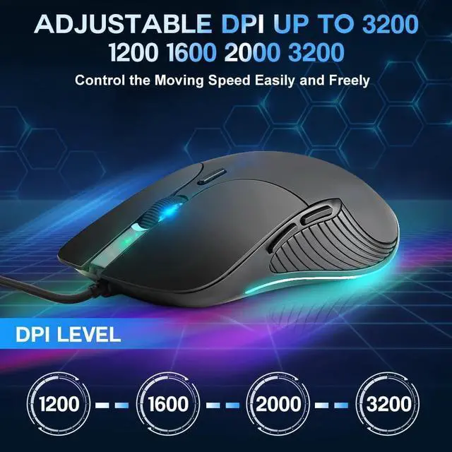 Our gaming mouse offers four adjustable DPI levels (1200/1600/2000/3200) to cater to your gaming needs. Switch between different sensitivity options effortlessly and adapt to different gameplay situations.