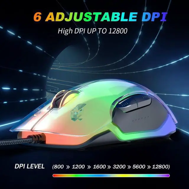 A: This laptop mouse can reach up to 12800 DPI, suitable for most of the games on the market. The macro software allows you to adjust any value from 800-12800.