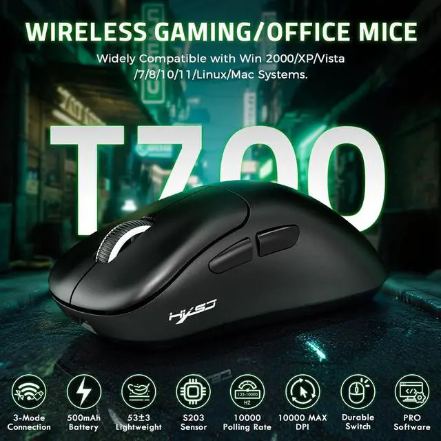 Triple Mode Connectivity for Ultimate FlexibilityEnjoy seamless switching between wired, 2.4G wireless, and Bluetooth 5.1 connections. The T700 mouse offers versatile compatibility with Windows, Linux, and Mac OS, making it perfect for gaming, work, and everyday use. The 2.4G receiver provides stable, low-latency performance, while Bluetooth ensures easy pairing with multiple devices.