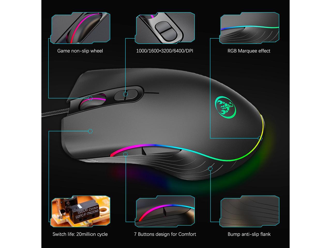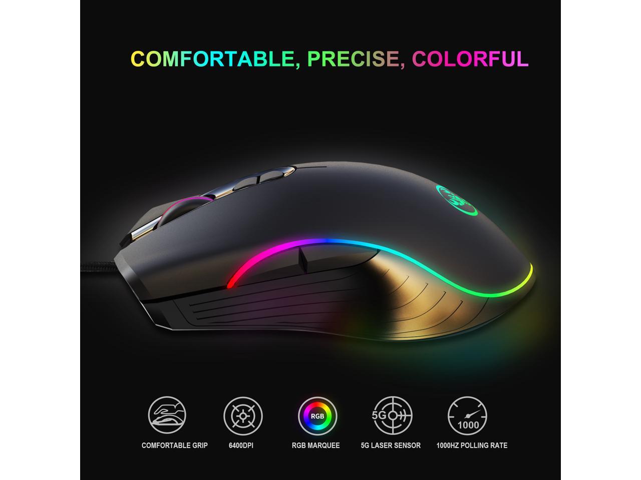 TROPRO RGB Gaming Mouse, 6400 dpi, Ergonomic Hand Grips, RGB Backlit Optical Wired Gaming Mouse 7 Programmable Buttons
