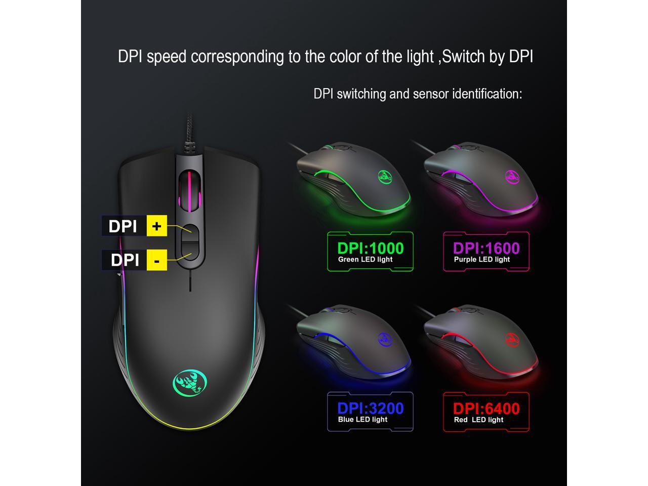 - 7:The parameters and lighting colors are as follows: First gear : 1000dpi(Green light), Second gear : 1600dpi(Purple light), Third gear : 3200dpi(Blue light ), Four gear : 6400dpi(Red light)