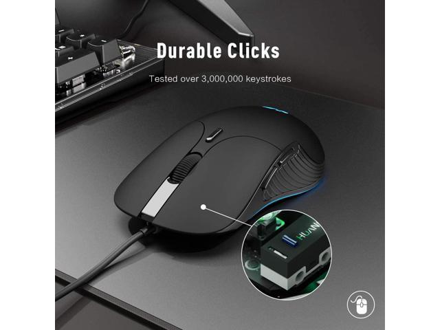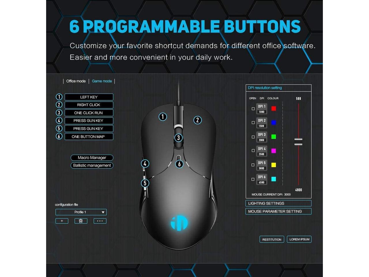 6 PROGRAMMABLE BUTTONS: This usb wired mice is equipped with six programmable buttons: left button, right button, forward, backward, DPI button and scroll wheel.
