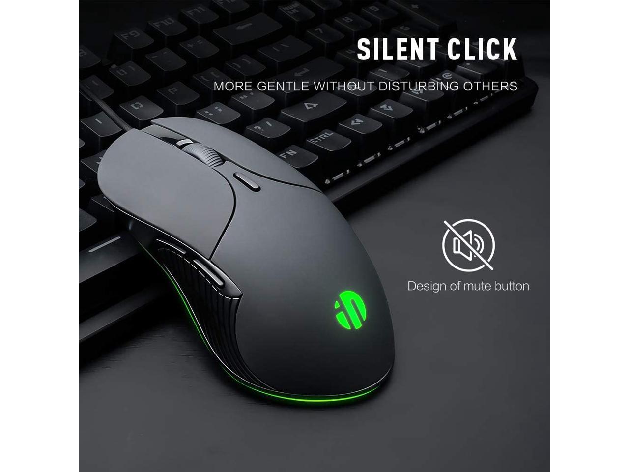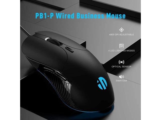 Wired PC Mouse, Silent Click, 4800DPI Adjustable & 6 Programmable Buttons, Optical tracking, Ergonomic Design, Streamlined inphic USB Wired Mouse for PC Laptop Computer Working and Gaming (Black)