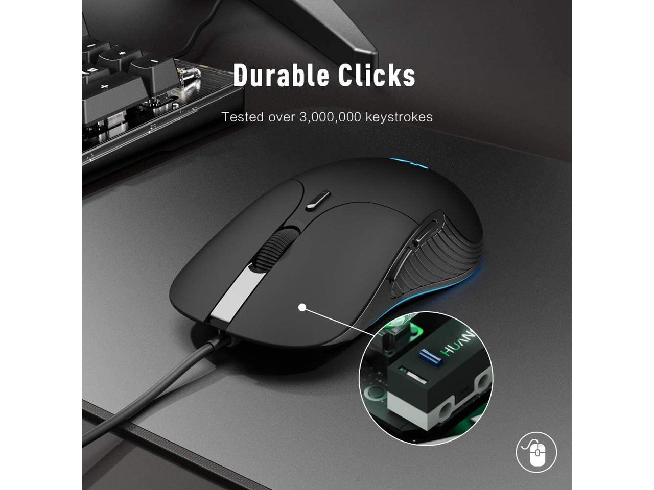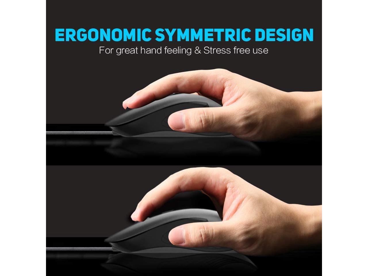 ERGONOMIC DESIGN: This gaming mouse perfectly fits under your palm, Rubber matte texture from skin-friendly material we take provides you a perfect hand feel, gives you the most comfortable using experience and makes you feel free from fatigue.
