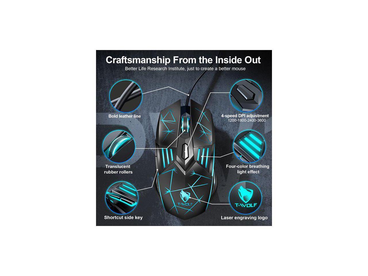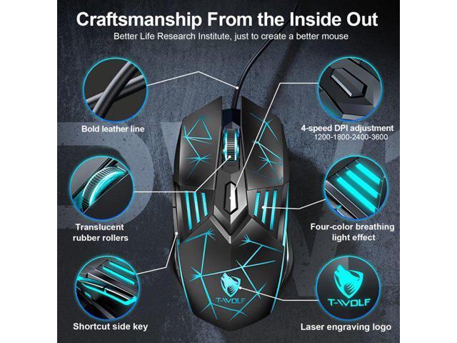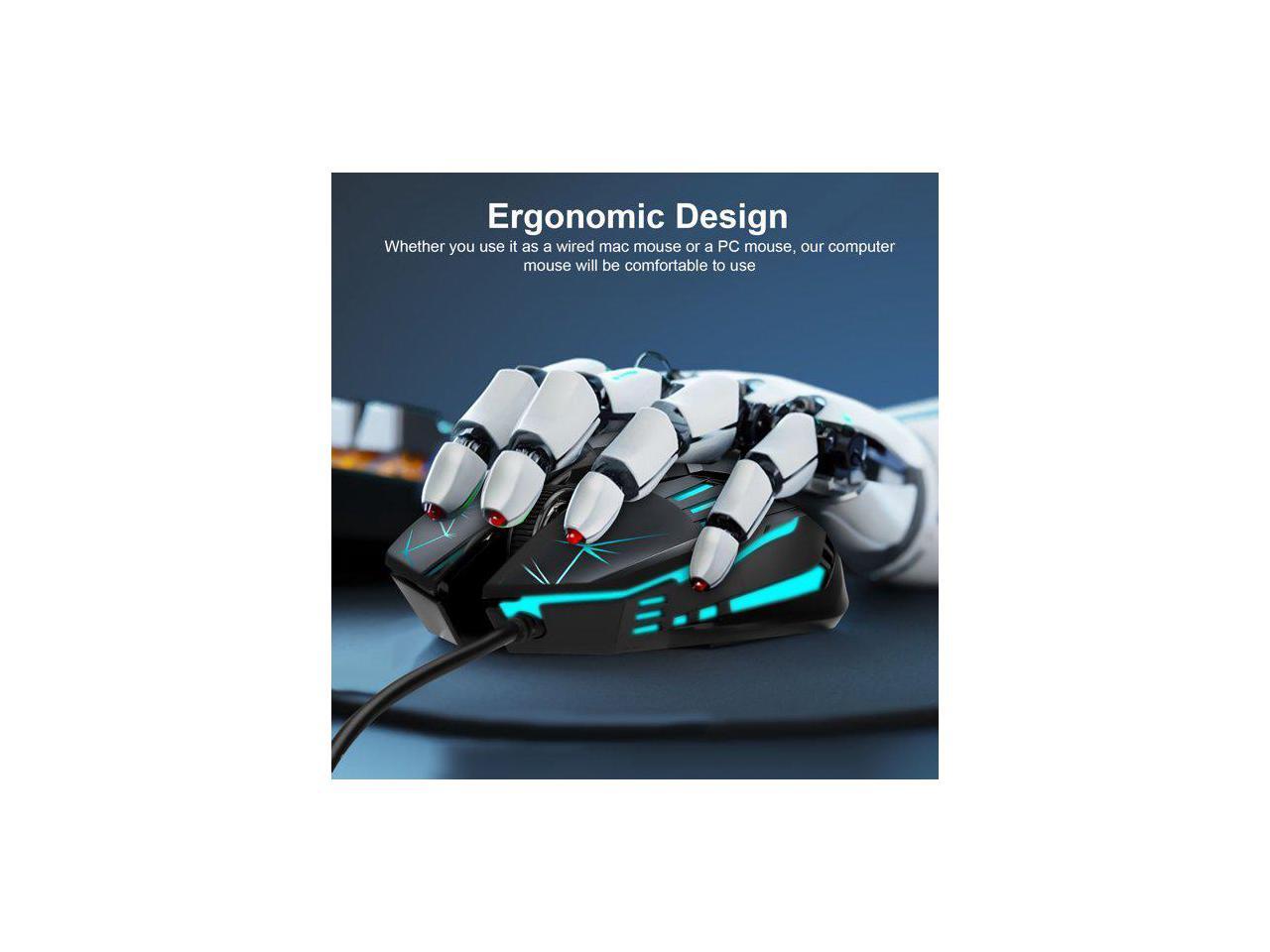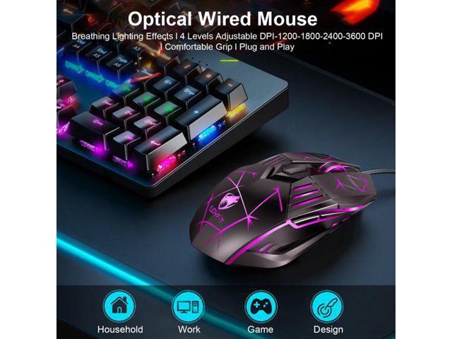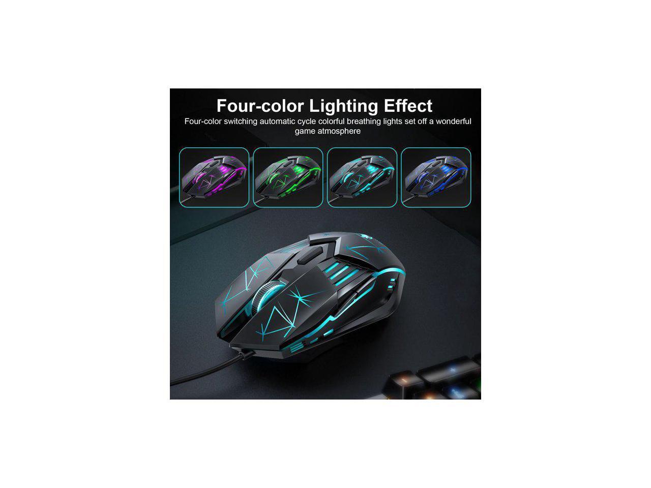 USB Wired Gaming Mouse, Ergonomic Optical Computer Gaming Mice with 4 Color LED Light, Up to 3600DPI, 6 Buttons Fit for Computer, Laptop, PC, Desktop (Star Black)