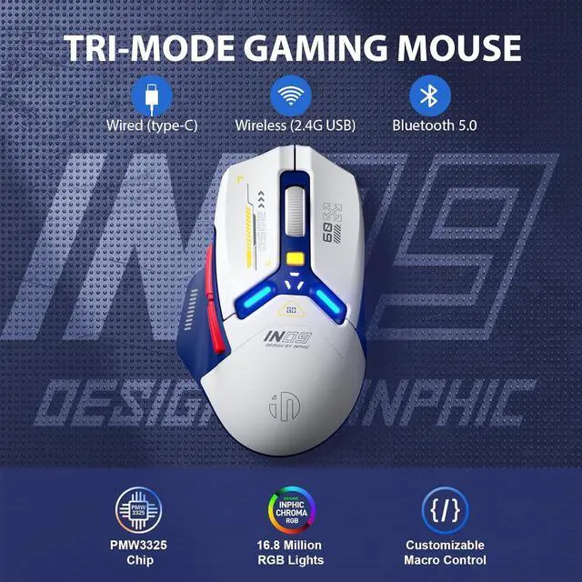 This wired / wireless gaming mouse featuring 6 programmable buttons, users can tailor commands and macros using customized driver (only for Windows). The onboard memory stores these settings, facilitating seamless transitions between devices.