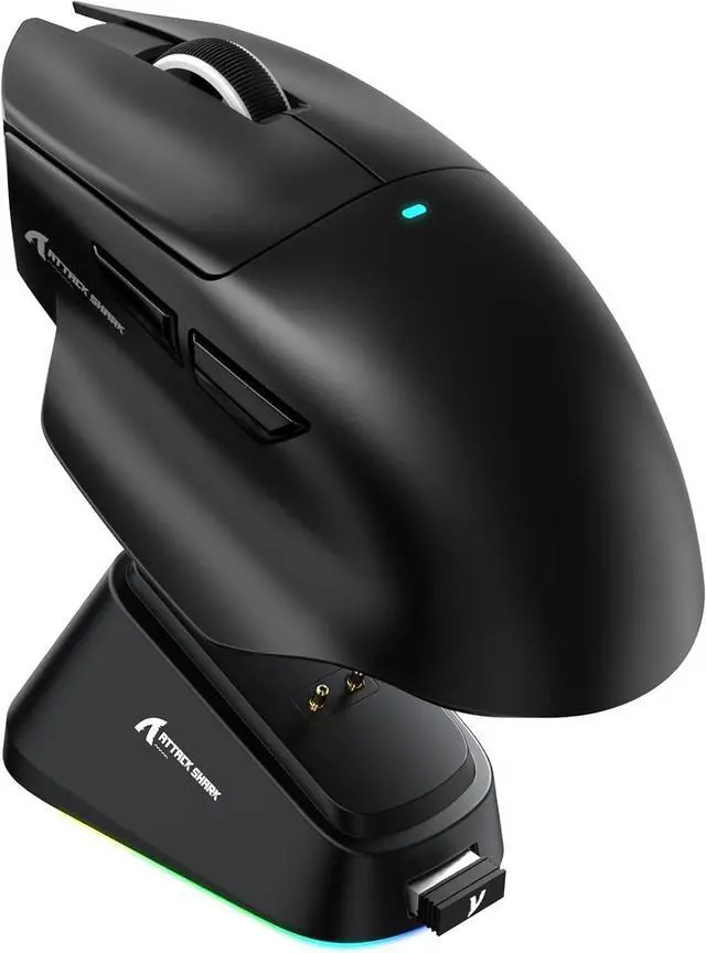 IHDAPP 65g SUPERLIGHT Mouse with Magnetic Charging Dock, PixArt PAW3311 Gaming Sensor, 25000 DPI, 500 mAh Battery, BT/Wireless/Wired Ergonomic Mice with Thumb Rest, for Win11/Xbox/PS/Mac