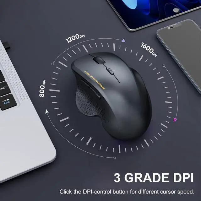 3 Level Free Adjustable DPI800/1200 DPI for daily office use; 1600 DPI for higher sensitivity, ideal for gaming. You can freely adjust cursor sensitivity.