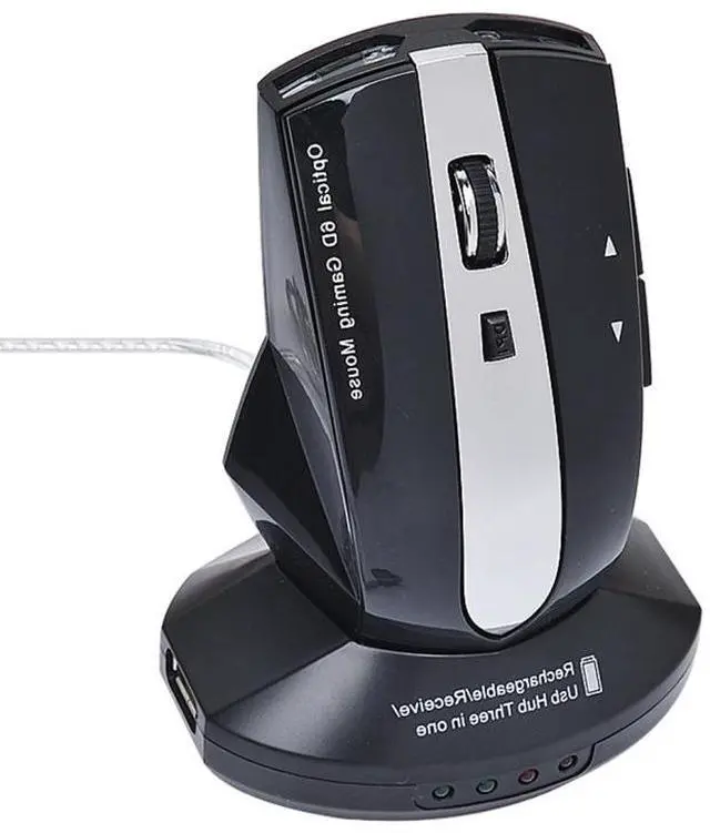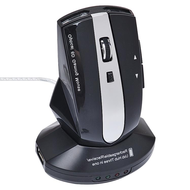 MZ-011 2.4GHz 1600DPI Wireless Rechargeable Optical Mouse with HUB Function(Black)