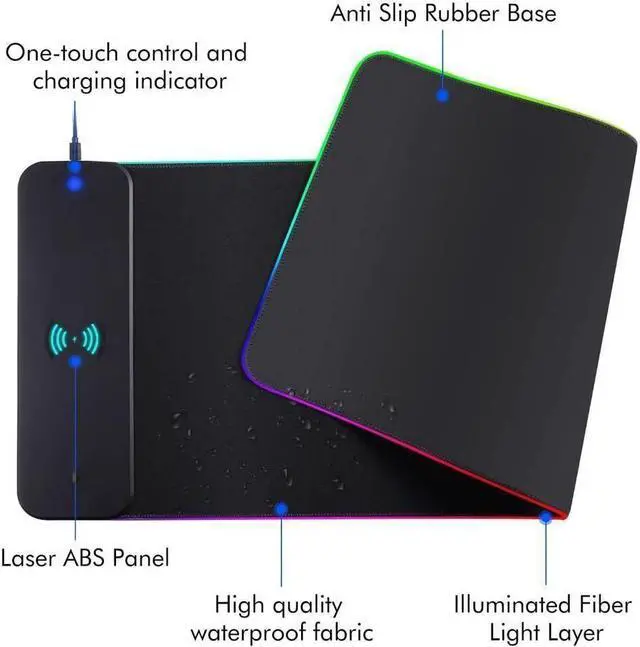 10W Qi Wireless Charging Mouse Mat Built-in 10W wireless fast charging compatible with smartphones which support wireless charging such as iPhone 8/X/XR/XS/11/11 Pro, Samsung Galaxy 10/S9/S8 Plus, Galaxy Note 9/8, and all other Qi-enabled devices. 3 charging modes indicator - RED for charging, GREEN for full charged, BLUE for standby mode. (NOTE: 10W need power adapter 9V 2A, But power adapter is not included with this Mouse Pad)