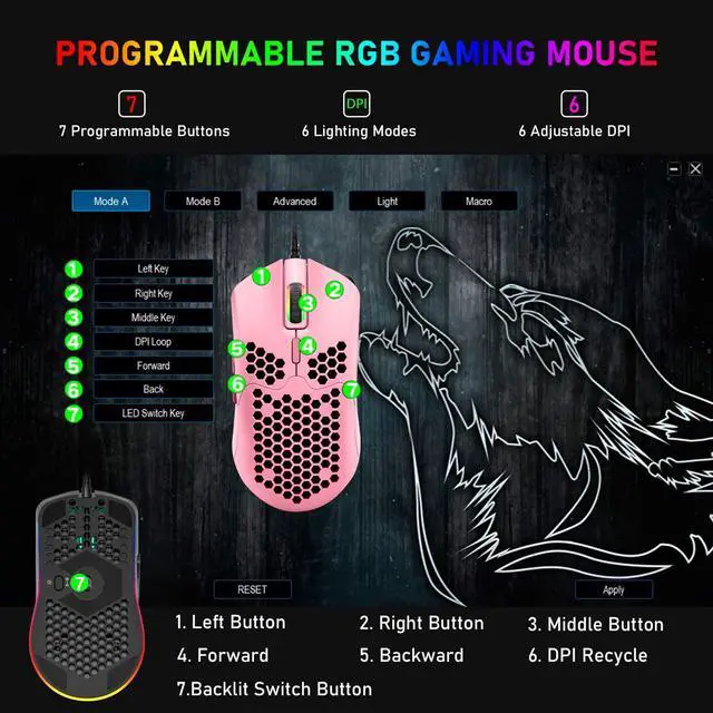 DPI adjustment: Up to 6400,Default Setting-1600(6 levels/ can be customized)