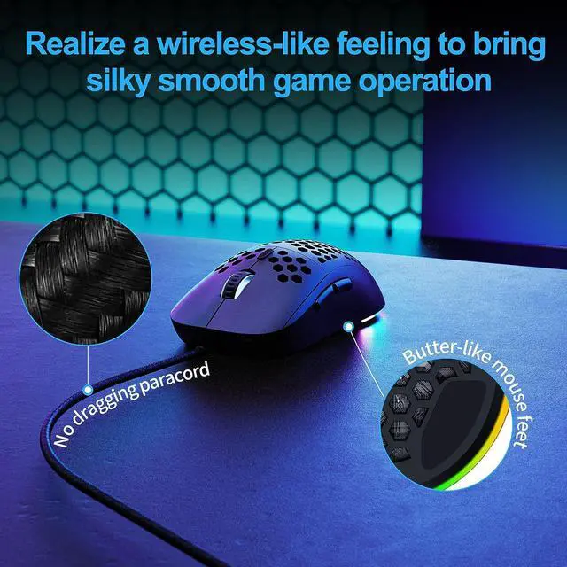 A medium size that most people can easily hold, an ultra-light weight of only 75g, and an ergonomic honeycomb design for comfortable grip and operation in games and offices.