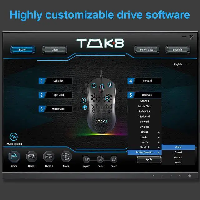 With TMKB's powerful driver software, you can remap the functions of mouse buttons, record macros, configure editing layers, and customize the color of RGB strips.