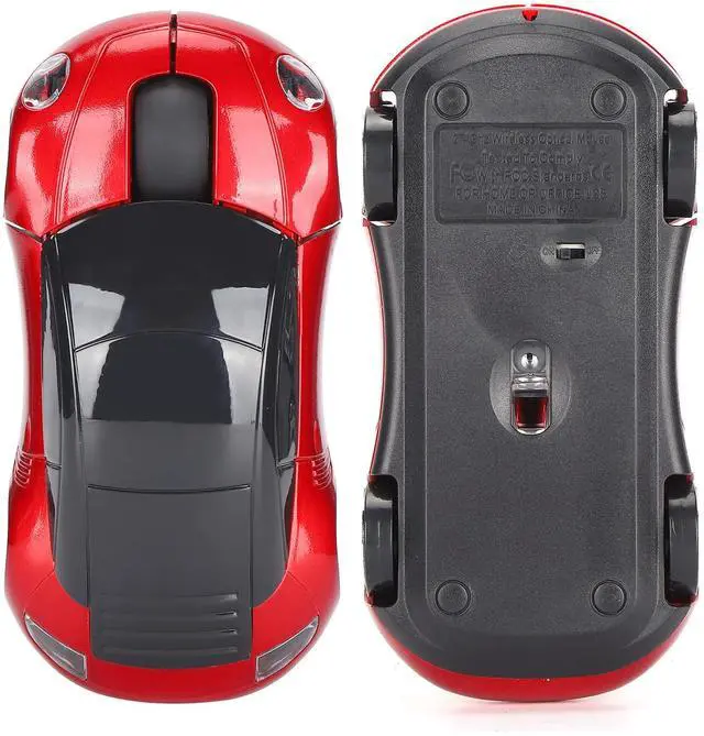 Vszerda 2.4G Wireless Mouse, Cute Car Mouse with USB Reciver, 1600DPI Optical Mice for PC Computer Laptop Tablet, with LED Light (Red)
