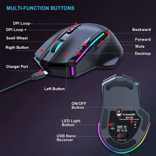 50 mil times key press test, strong durability, make sure the mouse is in super accurate condition for long time. Don't worry that your mouse button could break easily.