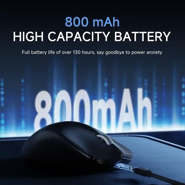 800mAh Rechargeable Battery & Long-lasting Lifespan: Built-in 800mAh rechargeable battery, this rechargeable wireless mouse can last 20 days with 5 hours of daily use. After being stationary for 1 minute, the mouse enters primary sleep mode and supports button and movement wake-up. The USB mouse can be easily recharged via the included USB cable for sustainable use. With a longer lifespan of up to 10 million clicks, gamers can enjoy consistent and stable operation.