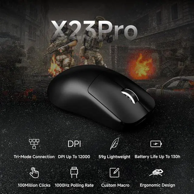Tri-Mode Connection & Wireless Gaming Mouse: The X23Pro wireless gaming mouse features three connection modes: 2.4G wireless, BT5.0 wireless, and USB-C wired connection. It can save up to 4 devices simultaneously and allows for quick switching by the bottom switch button. Suitable for both gaming and office use, it meets all your diverse needs.