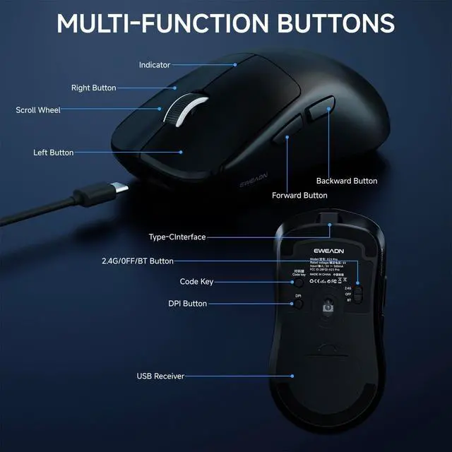 Programmable 6-Button Customization & Widely Compatibility: The wireless mouse features a 6-button configuration that can be fully customized to suit your gaming and office needs. Each button supports macro programming, allowing you to assign complex commands. The wireless mouse widely supports Windows 7/8/10/XP/Vista, Mac OS, Linux, and Android systems, making it suitable for PCs, laptops, Macs, and other devices to meet users' multiple needs.