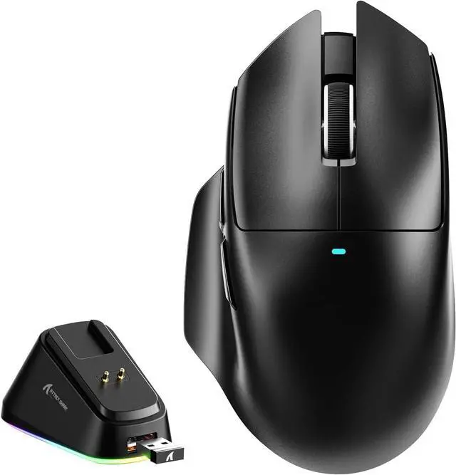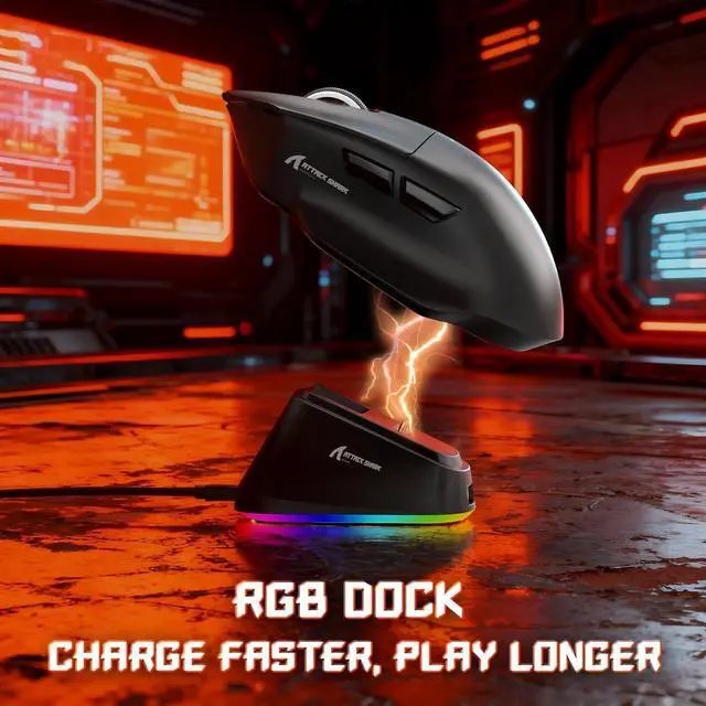 Magnetic Dock & Long-Lasting Playtime: The gaming mouse features a magnetic charging dock for quick and convenient charging, including an RGB button on the base to toggle lighting effects and customize your gaming ambiance. Powered by a 500mAh rechargeable battery, it delivers up to 200 hours of uninterrupted gaming or work.