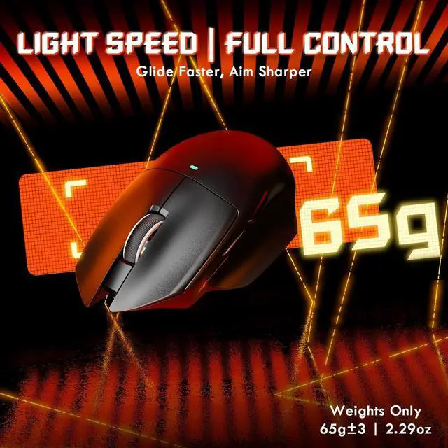 PAW3311 Gaming Sensor & BK52820 Chip Featuring the advanced PixArt PAW3311 sensor with a DPI range of 800 to 25,000, 400 IPS tracking speed, and 40G acceleration, the professional gaming mouse delivers flawless tracking for FPS, MOBA, and competitive esports titles. Powered by the Broadcom BK52820 chipset, it guarantees ultra-low latency wireless performance and stable connectivity for desktop and laptop setups.