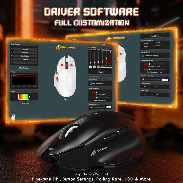 100 Million Clicks & Dual Driver SupportEngineered with advanced micro switches and an F-Switch encoder, this gaming mouse delivers ultra-crisp clicks, fast triggering, and stable reboundbuilt to last up to 100 million clicks. With both web-based and downloadable drivers, you can easily customize DPI, macros, and polling rate across different devices for a tailored gaming or work experience.