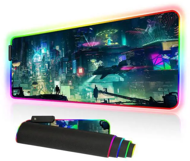 RGB soft gaming mouse pad extended size ideal for professional gamers. Stunning 9 modes RGB lighting/ Plug and Play/ Smooth/ Water resistant/ anti-slip Features: I button control Plug and play, no driver required 9 different lighting modes Micro-textured water resistant cloth surface Non-slip rubber base stitched edges prevent wear Extended size-31.5 * 11.8 inch (800x 300x 4mm) (Lx Wx H) Packaging: 1 *Glowing gaming mouse mat