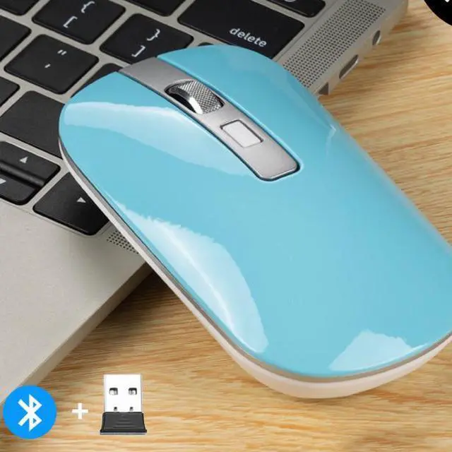 • Wireless Bluetooth Dual Mode 2.4G Mouse Metallic Mute Simple Business Office Rechargeable Mouse M106-Blue