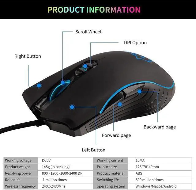 This mouse uses a high-quality USB cable with a magnetic ring to improve data transmission performance, plug and play,Optical engine,move more steadily and more accurately,no delay,no frame skip.