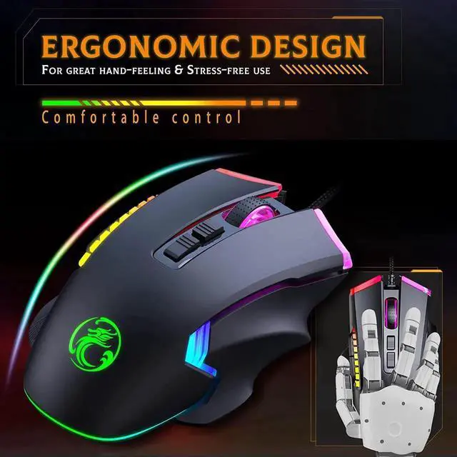 ERGONOMIC GAMING MOUSE - Designed with a thumb rest to help with ergonomics and create a more comfortable user experience. Besides, the special coating on the surface of the gaming mouse increases the friction between the hand and the mouse, allowing you to swim through the gaming world for hours without fatigue or wrist fatigue.