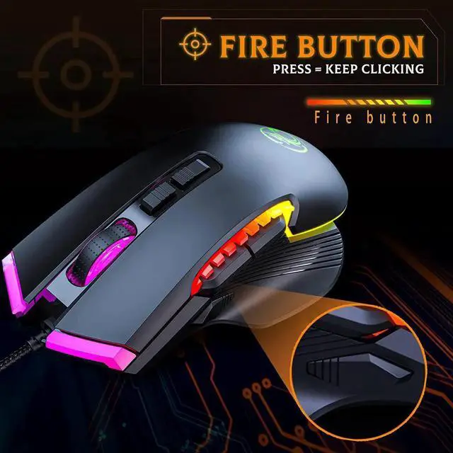 RGB BACKLIGHT MOUSE - There are 8 buttons on the mouse that can be set for more intelligent functions such as RGB Controls/media control/rapid fire/macro etc. 13 different backlight modes.