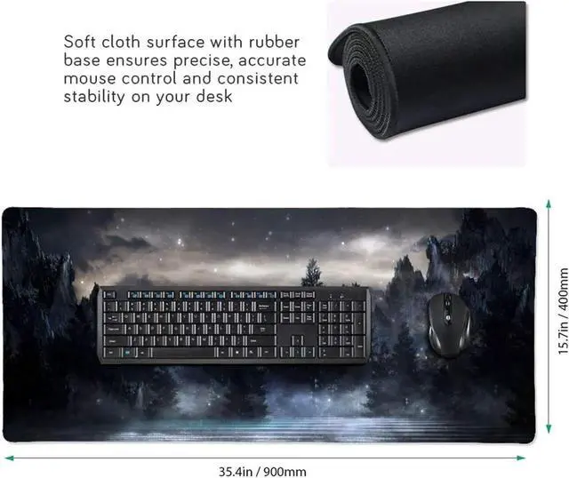 Large Mouse Pad SizeExtra large mountain forest desk mat's measure: 35.4 x 15.7 inch and perfect size. This oversized forest white gaming mouse pad are large enough to fit your mouse, gaming keyboard and other desk items, while maintaining protecting your desk all the time. Just immerse into your work or games without worrying about the annoying mouse pad movement.